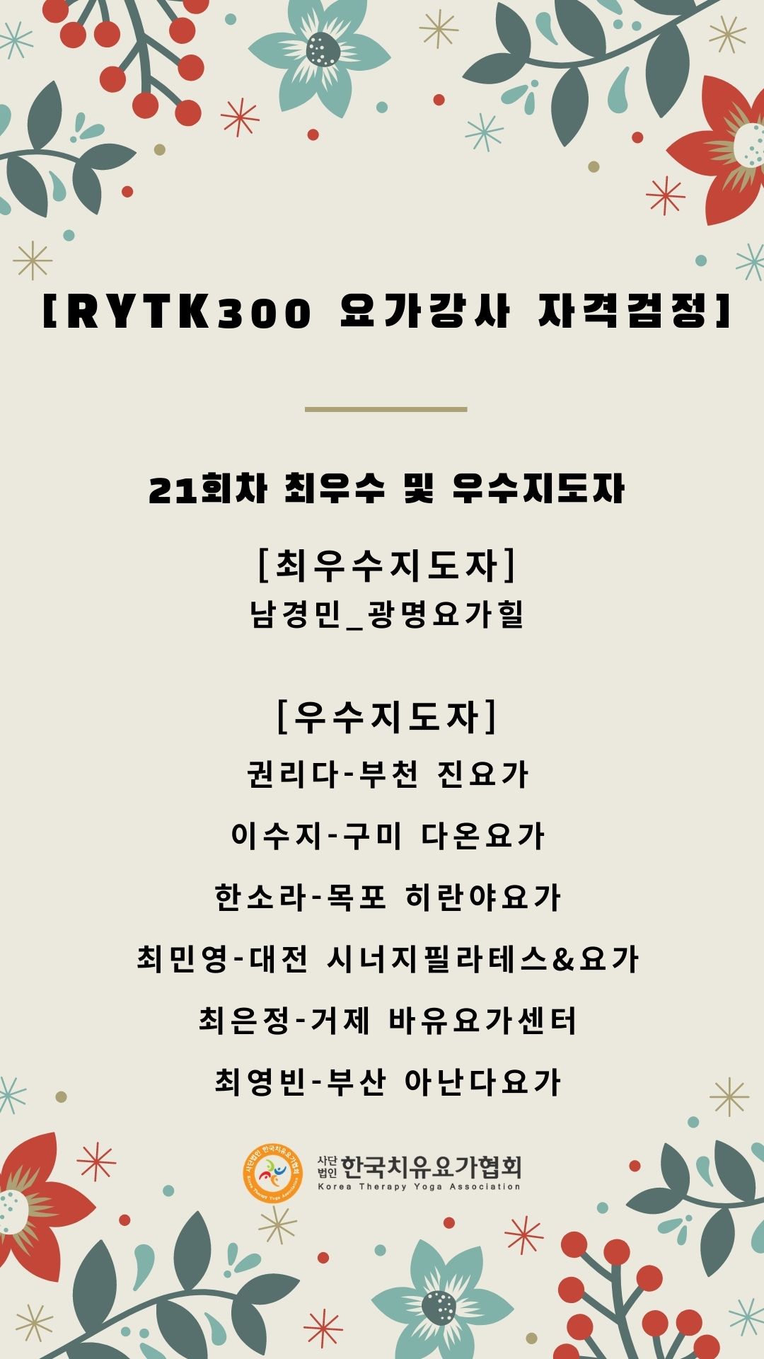 [RYTK300 ¿ä°¡°»ç ÀڰݰËÁ¤] 21ȸÂ÷ ÃÖ¿ì¼ö ¹× ¿ì¼öÁöµµÀÚ ¼±Á¤