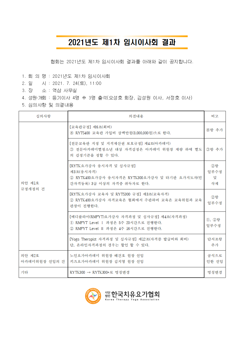 - Çùȸ´Â 2021³âµµ Á¦1Â÷ ÀÓ½ÃÀÌ»çȸ °á°ú¸¦ ¾Æ·¡¿Í °°ÀÌ °øÁöÇÕ´Ï´Ù.