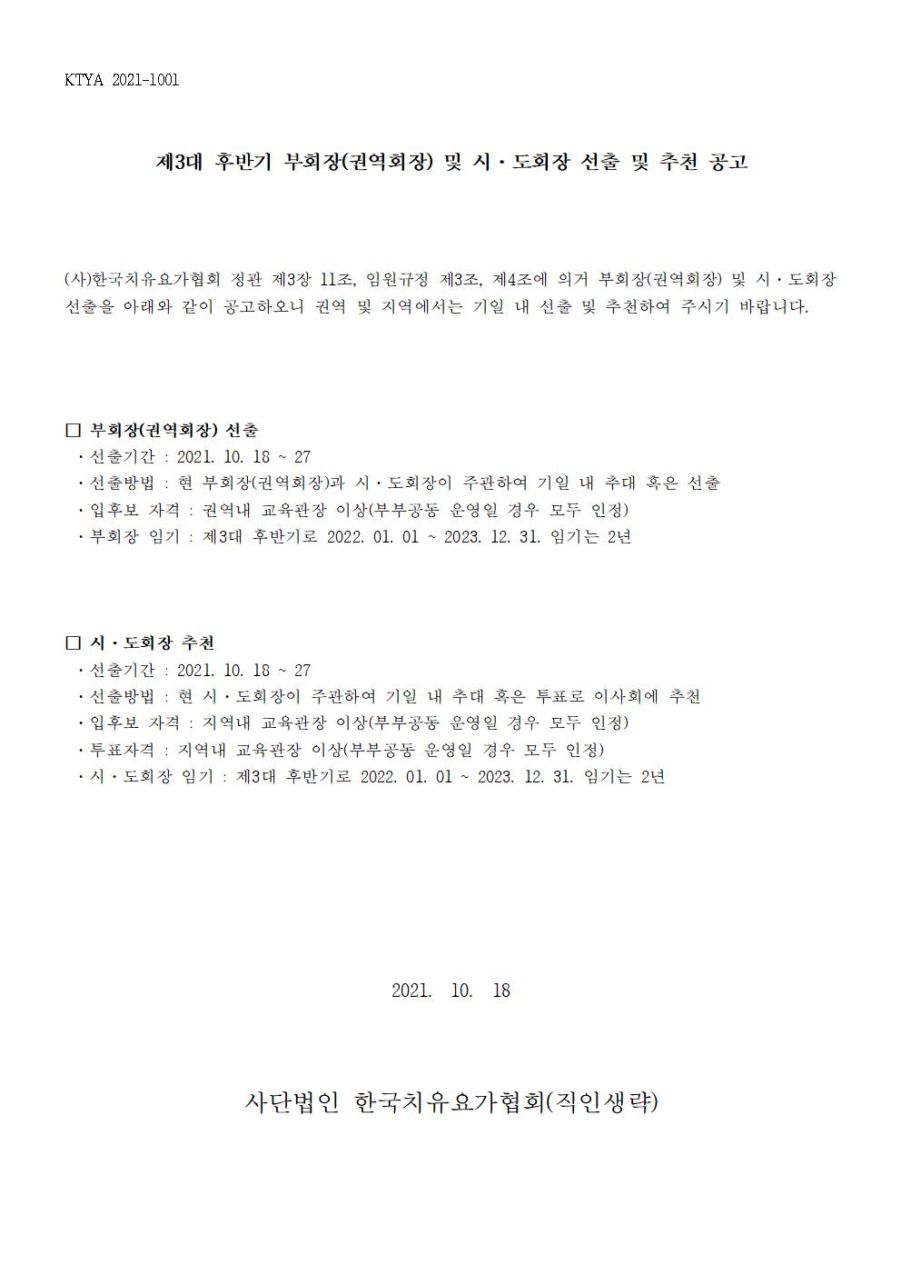 KTYA Á¦3´ë ÈĹݱ⠺ÎȸÀå(±Ç¿ªÈ¸Àå) ¹× ½Ã.µµÈ¸Àå ¼±Ãâ ¹× Ãßõ °ø°í